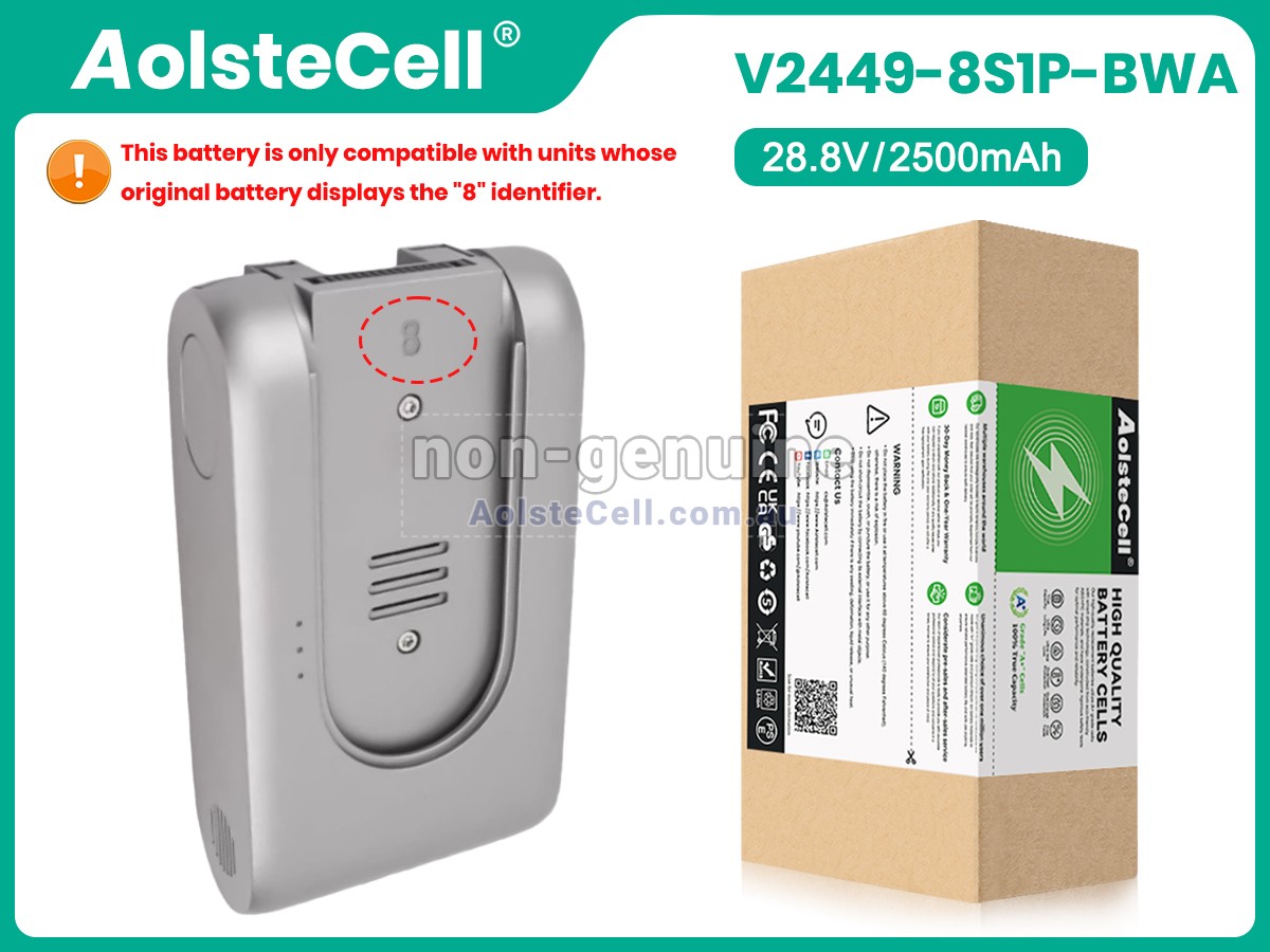 Our V2449-8S1P-BWA batteries are manufactured to original specifications and are the same shape, size and quality as the original battery. Just make sure your original battery is the same shape as the picture we provided and the battery/vacuum cleaner model is on our compatibility list!